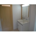 間取り変更で広くなった洗面脱衣室に、洗濯機のスペースを。 洗面化粧台は、たっぷりの収納と洗いやすい陶器製ボウルを搭載したTOTO社のサクアをご提案しました。 サッとふくだけで汚れが落ちる「セフィオンテクト陶器ボウル」 汚れがたまりにくい「お掃除ラクラク排水口」。 エアイン機能搭載で節水に貢献する「エアイン®シャワー」 広く照らしながら省エネにもなる「ワイドLED照明」!
