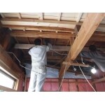 全体を剥がしてみて、思ったより床の状態が悪いのですが 思い切って構造材も取り替えて、不陸を直し、 小屋の母屋も強度不足の部分は、補強する事になりました。