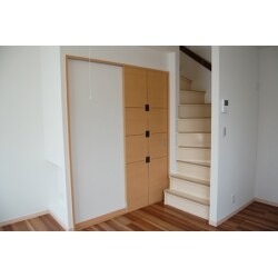 明るい雰囲気がご希望との事でしたので白を基調として 木目を使いアクセントとしました。 収納は、後で棚を自由に変えられるよう可動棚にしました。