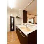 シックな色合いと収納豊富な洗面台