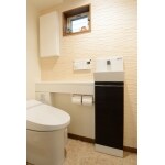 既存のタンク付トイレを撤去し、お手入れがしやすいタンクレストイレを設置。収納棚を兼ねた手荒い器も併せて設置しました。