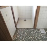 現状のままで仕上げたいとのご希望だったので、既設壁のタイルはそのままで 仕上げ、床は冷たい感じがするとのことなので、CF貼りを薦めました。