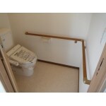 バリアフリーな引き戸になり、身体能力に合わせた使い勝手の良い手摺を設置。 御祖父様お一人でも、安心してトイレに行くことができます。 将来、車いすが必要となった時のことも考慮し、車イスにも対応出来る広々とゆとりのあるトイレプランとしました!