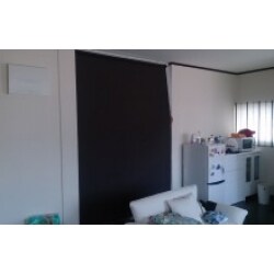 ロールカーテンを下すと、壁が出来たような落ち着いた色のカーテンの壁になります。見た目以上にしっかりと仕切られ、ロールカーテンを下してる間は、光も通さずお客様にはご満足頂ける内容になりました。