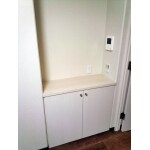 洗濯機パン・洗濯機水栓なども交換しました。 また、向かいの収納建具や、内装も施工しています。