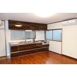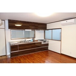 キッチンが広すぎるので、コンパクトなものにしたい。 同時に周辺のクロスを張替したい。