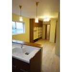 収納は扉を変え生かしています。タンクレスのアラウーノを採用。親世帯には手すりと手洗いを設置しました。