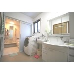 洗面には、LED照明を使用しました。広くて明るいスペースになり、洗濯をしたり、お化粧するのも快適になったと喜んでいただきました。 また洗面所の2ヶ所に照明のスイッチをつけることで、お風呂を出入りするときにもスイッチに手が届くようにしました。お風呂の手すりは、将来的に考えてつけるように提案しました。家族みんなが安心できるように、工事中の写真をアルバムにして確認していただきました。