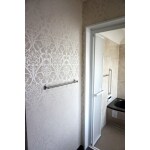 明るくなった吹き抜けホールに、素敵な壁紙でアクセント
