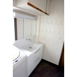 壁面収納をなくして、洗面台サイズを以前より150mmアップしました。3面ミラー収納で収納量は増えますが、使い勝手はオープン型の以前の方が良いのでは?とお客様とも検討しましたが、引き出しキャビネットを上手に利用して、洗剤やストック品などを収納していただき逆に以前より収納量はアップいたしました。