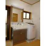脱衣所スペースが少し狭いようでしたので、省スペースタイプの洗面台を採用、フロアは耐水タイプを使用しております。