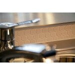 キッチンのライニングには6角形のモザイクタイル、食器棚の背面には30年前にヨーロッパで流行した「ランタン」タイプのタイルを使用しました。