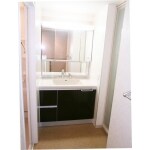 幅が100センチのチャイルドミラー付きのおしゃれな洗面化粧台を設置いたしました。