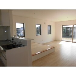 対面キッチンのある広々としたLDKになりました。畳コーナーをつくりご家族が寛げる空間となっています。半畳たたみをきかせた明るい和モダンな空間に仕上がりました。