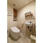 便器はTOTOのネオレストDHタイプでタンクレストイレに交換し、収納の扉やカウンター、棚板などは無垢材に塗装を施し、全体の雰囲気になじませました。