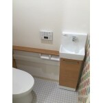 収納が大きく、手洗器を別設置のシステムトイレをご要望でした。カウンターに小物も並べられて、トイレの掃除用品等がすっきり収まるように出来ればとお選びいただきました。