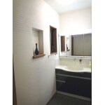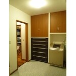 気兼ねなくお風呂に入れるようにしたいとのことから、間取りを変更して洗面室と脱衣室を別々に設けました。以前より広くなった脱衣室には新しく収納を造作しました。洗面化粧台にはTOTOのオクターブを選定しました。高級感と大容量の収納力を兼ね備えており、散らかっていた小物もキレイに片付きました。 また、勝手口からの廊下を脱衣室へ取り込んだことで、脱衣室までの動線を短縮しました。キッチン側にも出入り口を新設して、使い勝手が良くなったとお喜びいただけました。