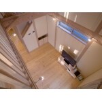 リビングからの吹抜け 2階に上がった空気が階段から下りるよう リビング階段にして空気が循環するようにしました。