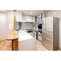老朽化したL型キッチンを取り替える際に、TOTOクラッソのA型キッチンをご提案しました。これにより家事動線もスムーズになり、調理スペースも格段に広くなります。寒さ対策には、勝手口も含めた全ての窓にペアガラスサッシを採用。YKK APのエピソードを選定し、断熱性を高めました。また、リビング・ダイニング・キッチンの三箇所に床暖房を設置する事で、冬でも暖かく快適に過ごせるようになりました。 居間として利用されていた和室には段差があり、ご夫婦が気になる点のひとつでした。また、家具によって光が遮られ、全体的に暗い印象を与えていました。今回和室をリビングへと変え、ダイニングキッチンとつなげた事で段差を解消し、造付の家具があった部分には使い勝手を考えた収納スペースを造作しました。