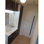 広めの洗面室にしたので収納力の多い洗面化粧台にしました。 また、収納棚が置けるようなスペースも確保しました。