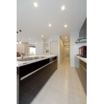 1階のLDKはキッチン、洗面、玄関と回遊でき家事がはかどる間取り。使いやすさとともにナチュラルでモダンな白い空間に風が通り、光が広がります。