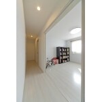 お子さんの成長と共に部屋が必要になり、2階の広いバルコニーのスペースに1部屋増設して、2階に子ども部屋を増やしました。ドアを開け放てば、廊下も取り込んで広い空間になります。内装は白を基調にして、明るいスペースになっています。