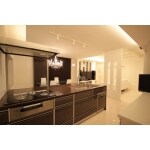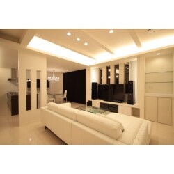 改装後の床・壁・天井を白を基調に明るく仕上げ、一部の設備機器をブラウン系でアクセントと付け、スリットのある壁を目隠しにリビングとダイニングキッチンを仕切り等の提案をさせて頂きました。