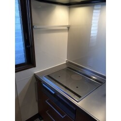 キッチンはコンロ周りにふきんや調理器具がかけれるようにしたい。とのことでしたので、TOTOのハンガーレールを取付しました。 また、IHのグリルが掃除し易いパナソニックのVシリーズをご提案いたしました。