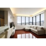 大容量の壁面収納を造作しました。ご希望通り、扉面材を鏡にしました。家電も収納できます。 家具だけでなく、景色が抜けたお部屋でしたので、天井面をできるだけフラットにして景色を引き立てる間接照明をご提案。空間にアクセントをつけるだけでなく、光源が隠れているためスッキリとした空間が演出できます。