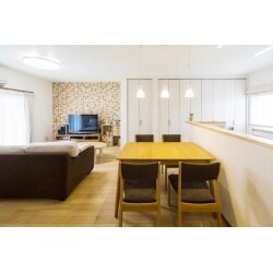 (旧株式会社ハウスドゥでの事例です。)ご家族が快適に暮らすことができるよう、床には無垢のフローリングをご提案。 ご要望の対面キッチンも、リビングを通ってお部屋に入る間取りにしたことで、家族のコミュニケーションが取れるLDK空間に。 収納を白い扉にしたことで、圧迫感のない広々としたLDKを実現。 「来客時には友達がほめてくれるので、リフォームしてよかったと本当に思います!」