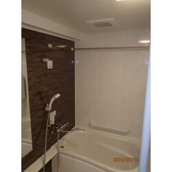 タイル貼りでお掃除が大変だった浴室をお手入れが簡単なユニットバスに取替ました。ブラウンのパネルがアクセントになっているシックな雰囲気の浴室になりました。