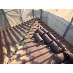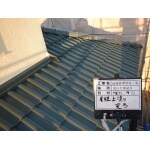 屋根の棟部分が泥と漆喰かなり劣化いていたので 棟部分を撤去金物垂木で下地を直し南蛮パッキンビスで固定 瓦自体は1度塗装していたので問題ありません、こう耐候性のフッソを進めました