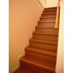 カーペットから床材に貼り替え。カーペットで滑りやすかった階段は、滑り止め付きのリフォーム階段でリフォーム。 クロスや巾木の塗装も行いました。