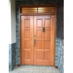 玄関ドアは既存のドアについていたドアノックを再利用したいということでしたので、それに合う無垢のドアをご提案させていただきました。 欄間や枠の部分は古くなったペンキがベッタリと塗られている状況でしたがそれを丁寧に剥がし木目をよみがえらせた上でドアに合うように着色を施しました。 まるで最初からそのようになっていたかのような仕上がりとする事ができ、お施主さまにも大変喜んでいただくことができました。