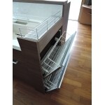 ・キッチンの収納が、開き扉で使いにくいのでスライドタイプにしたい。・人造大理石のカウンターが気に入っているので、同じタイプにしたい。・レンジフードもお掃除しやすいタイプにしたい。・何人かでキッチンに立つ事があるので、調理スペースを広くしたい。