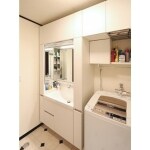 (旧株式会社ハウスドゥでの事例です。) 浴室、洗面所ともに、収納を以前より増やし、女性3人それぞれのシャンプー等もすっきりとご収納頂けるように。