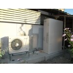 浴室に繋がっていた壁穴など、隙間があった部分などコンクリートで綺麗に埋めてからエコキュートと室外機を設置しました。
