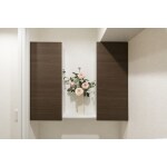マンション独特の限られた空間の洗面室。機能性とデザイン性を兼ね備えたTOTOの洗面化粧台を選びました。