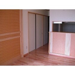 フローリングには桜を使用し、天然木のオリジナル建具を設置しました。 また、対面キッチン前のカウンター下は収納を作り収納量を増やしました。収納も周りの建具に合わせ、天然木で作成しました。