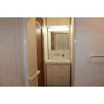 限られたスペースに合わせ、シンプルで使い勝手の良い洗面化粧台を提案しました。
