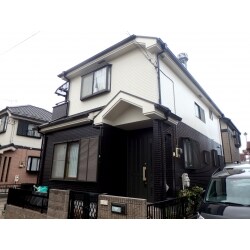 コーキングの打ち直しやベランダ防水をしっかり行った。 2トーンの外壁で見た目も一新したお家に。 [屋根の塗装も含めた価格です]