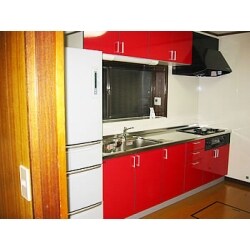 キッチンのサイズは拡張され、充実の収納力で鍋なども全て綺麗に片付きました。 収納量と作業スペースが増え、余裕のある空間が生まれた。 キッチン扉の赤が効いた明るい部屋になりました。