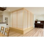 ・足の不自由なお母様が遊びに来られた時に、腰掛にちょうどいい高さを設定。 ・可変的で大勢の人が集まる時も大活躍。 ・お母様が泊まれるように、丈夫で光も取り込めるアクリル障子で間仕切り。