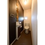 寝室と小上がり和室からも近く配置することで、足の不自由なお母様にも安心してお使いいただけます。 また一面にアクセントクロスを使用し、おしゃれな空間を演出しました。