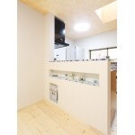 (旧株式会社ハウスドゥでの事例です。)モザイクタイルなど使用したい素材をお伺いし、お家の中でどのように活かすのかということをパースなどを使用し、ご提案。 対面カウンターのモザイクタイルは空間を彩るポイントとなりました。 LDKには古材を使用した、和室の違い棚風の造作飾り棚とPCテーブルを、玄関収納にも古材を使用。 「ナチュラル」ということで無垢材や珪藻土をご提案。 トイレ壁面に収納を造作、キッチンの対面カウンターにもニッチを取り付ける等、細かい収納スペースも充実。 「ガラスブロックやモザイクタイル、造作収納など、考えていた理想の住みたい家になりました!」とお喜び頂けました。