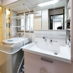 (旧株式会社LIXILリニューアルでの事例です。)間取り変更はせず、洗面化粧台の収納を充実する事で狭い空間を有効活用いたしました。 お年頃のお子様がいっらしゃり小物が多いとの事でしたので、袖収納タイプをご提案させていただきました。