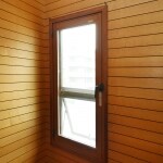 防犯対策としてキッチンの勝手口ドアを小窓に改修