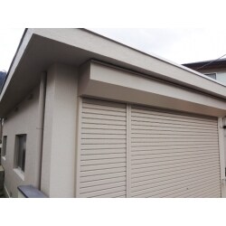 予算内で出来る箇所までの工事をとの事でしたが、ご希望の箇所をトータルで施工できるように、ご提案をさせていただきました。 車庫天井はモルタルが剥がれて落ちてくるのを気にされていたため、予算等も考えて打ち合わせの結果、ケイカル板張りをお勧めしました。 シャッターは既存のものは撤去せずに、新たに簡単に開け閉め出来る文化シャッターの取り付けで、屋上防水は構造がRC造でしたので防水効果が高く、耐熱性・耐水性に優れているメルトーチ防水工法での施工を、車庫外壁塗装は、防水性のあるSK水生ソフトサーフを新築の家にあう色でご提案しました。 内容・予算ともにご納得いただけました。