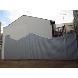 元々隣家と壁がくっ付いていたので、隣家の解体後は外壁を板金で補修していました。跡地に建物が建つということなので、この機会に錆びの出ていた外壁板金のやり直しと塗装をご希望でした。