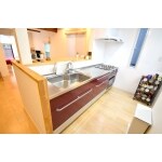 お客様のご要望からクリナップさんの収納内部までステンレス製のキッチンを選定して頂きました。形状やコンロ・お菓子作りのオーブンなど細部にこだわり、最終的に扉色も悩まれましたがワインレッド色となりました。白で統一された色調の中にワインレッドがより一層引き立っております。収納も以前汚物洗いスペースや選択スペースを収納に変更しましたので、壁の移設や耐震補強も行いました。収納量も多く使い勝手の良いキッチンスペースとなりました。 対面キッチンでダイニングから気持ち良い広々とした空間にる為に吊戸棚を無くし、ダイニングから一体空間としております。ダイニングから手元が見えやすい為、通常のキッチン前カウンターよりも高くしております。 床には床暖房も設置して、長時間のお料理やお菓子造りの際、冬の寒さ対策はバッチリです。床下の湿気のチェックや床下断熱施工も行いましたので、床暖房の熱が床下に逃げなく発熱効率も良くなっています。 奥には勝手口ドアを設置し、の内部が上げ下げ窓で開け閉め出来換気は十分です。勝手口の外には大きく庇を設置しておりますので、雨の際にも外にゴミを置いたりこちらも使い易くなっております。